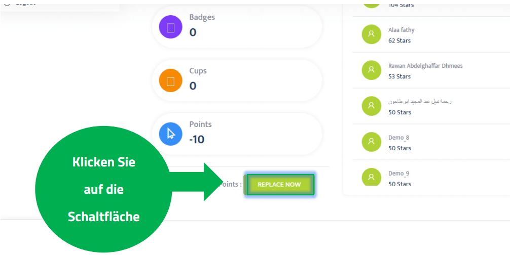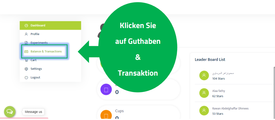 Klicken Sie auf Guthaben, um die erhöhten Punkte zu sehen