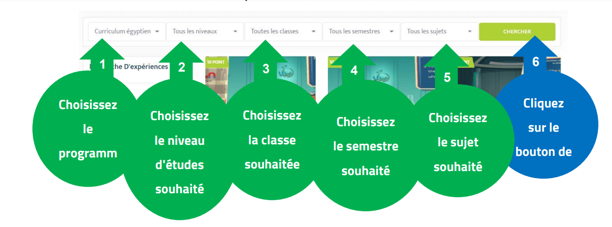 Recherchez l'expérience souhaitée à l'aide du filtre de recherche et suivez cet ordre.