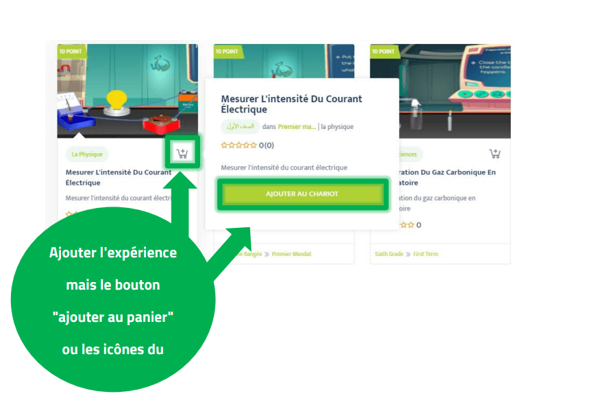 Choisissez l'expérience que vous souhaitez acheter et appuyez sur le bouton "Ajouter au panier" ou sur l'icône du panier