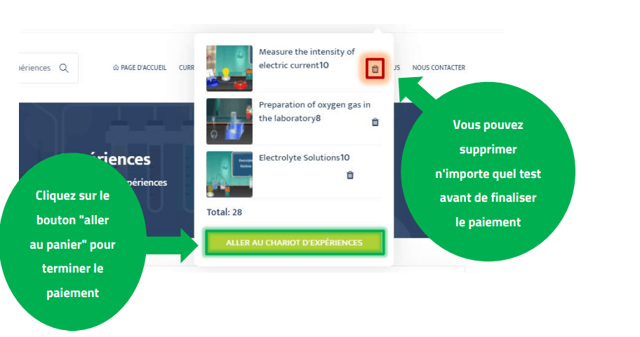 Vous pouvez supprimer toute expérience avant de finaliser l'achat en