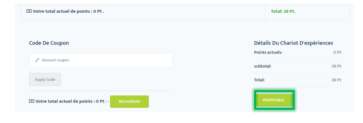 Le total sera déduit de votre solde de points. Si vous n'avez pas assez de solde de points,