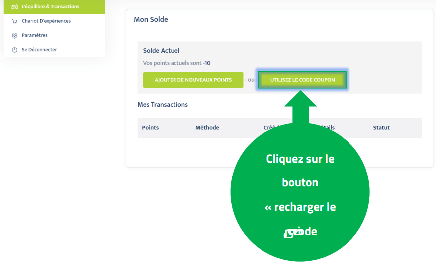 Vous constatez que votre solde a été débité avec succès et que votre solde de points a augmenté