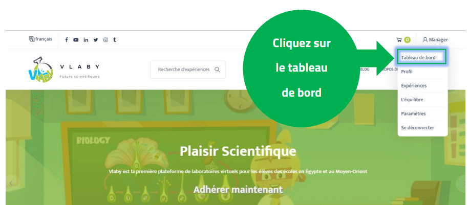 cliquez sur le tableau de bord