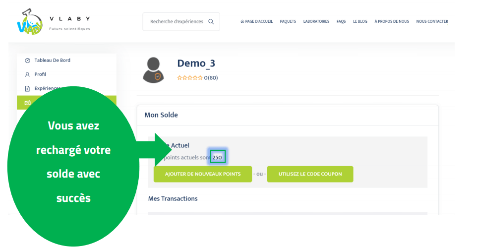 cliquez sur le solde pour voir les points augmentés