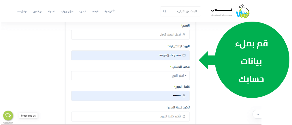 2. املأ بيانات حسابك , اذا كانت مدرسة الرجاء بإدخال اسم المدرسة الرسمي