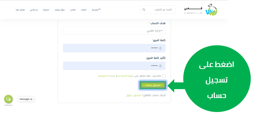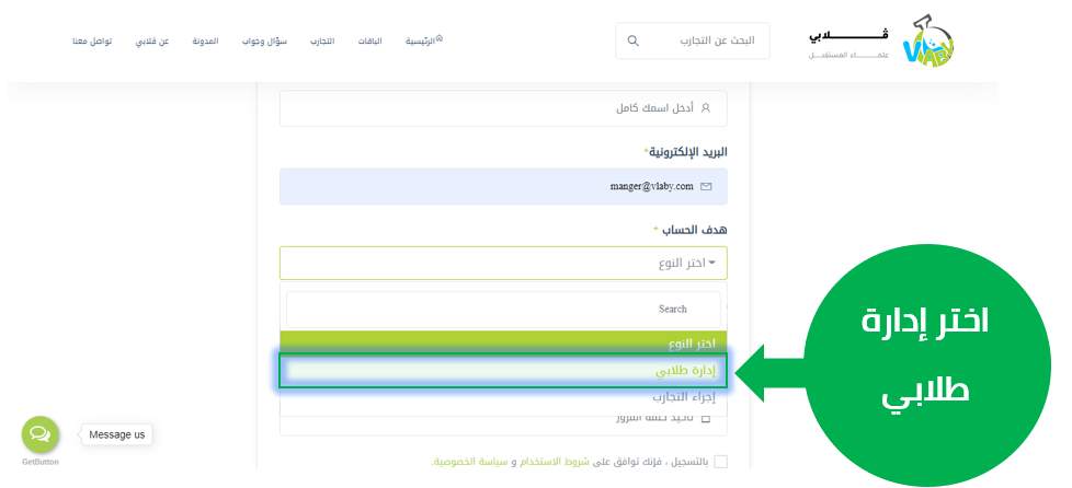 3. في خانة هدف الحساب اختر إدارة طلاب