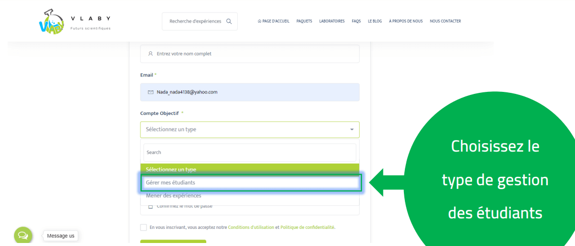 Dans le champ cible du compte, choisissez la gestion des étudiants