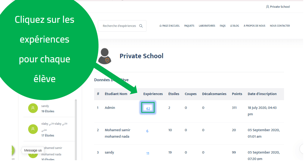 Vous pouvez cliquer sur chaque étudiant pour découvrir des informations