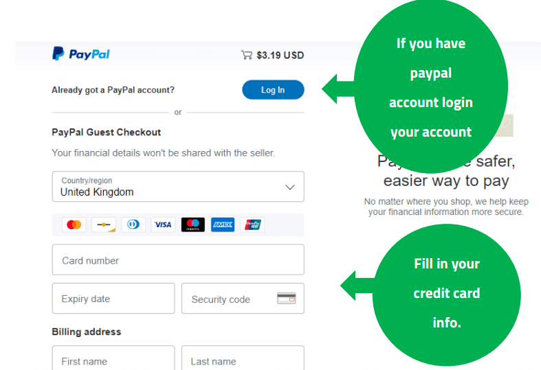 If you do not have a PayPal account, you can enter your credit card information and pay with it. Ask a parent for this step
